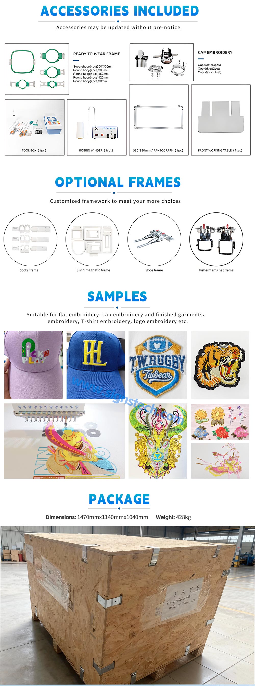 For Flat/Garment: 500mm*400mm, Cap:260mmx60mm, two heads,12/15 needles,Topwisdom System
