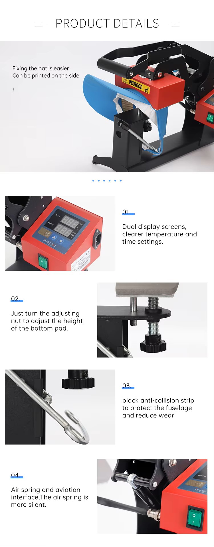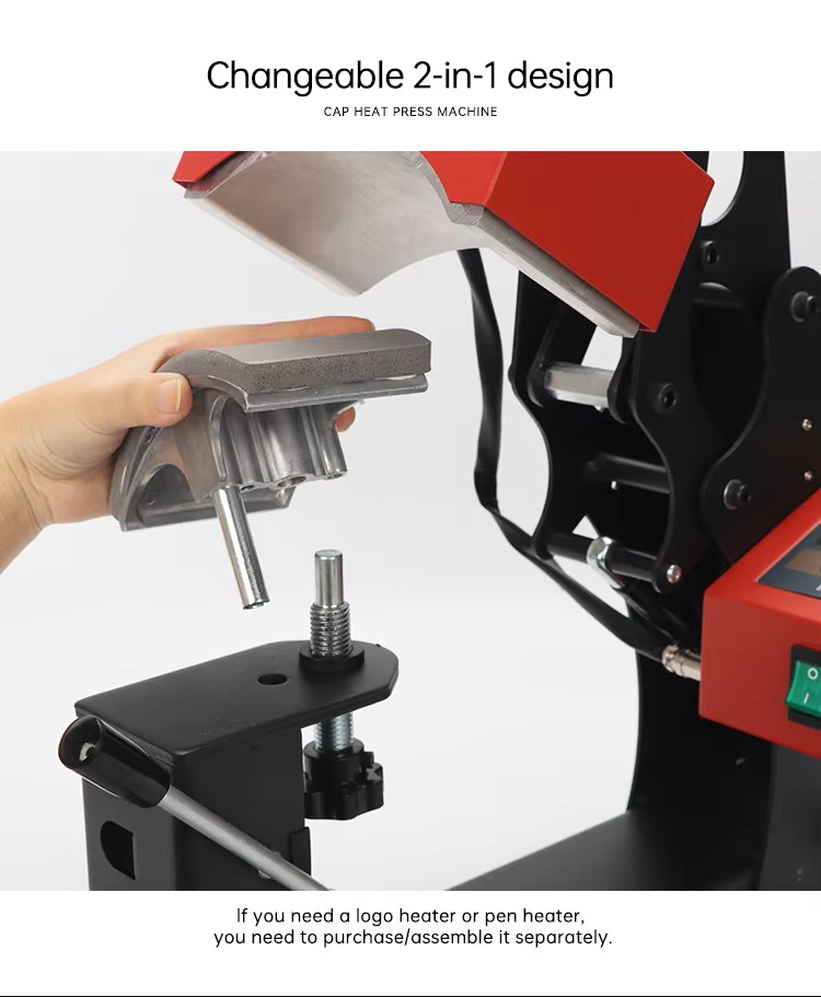 This New Arrival Hat Heat Press Machine features an exchangeable heating board,ensuring flexibility and longevity. With a power of 300W, adjustable temperature range (0-220°C), and dual voltage support (110V 220V), it offers precision and adaptability for various tasks. Its compact working size (8*15CM) and lightweight design (9KG net weight) enhance portability and ease of use. Backed by a 1-year warranty, this machine is ideal for cap customization with minimal failure rates and high efficiency.