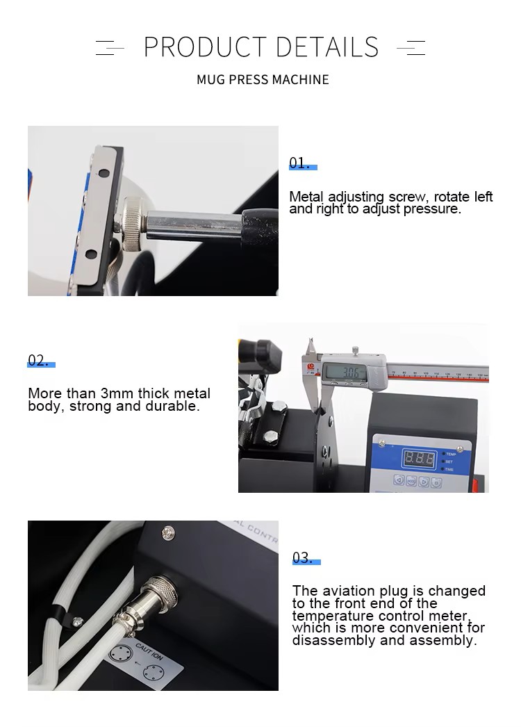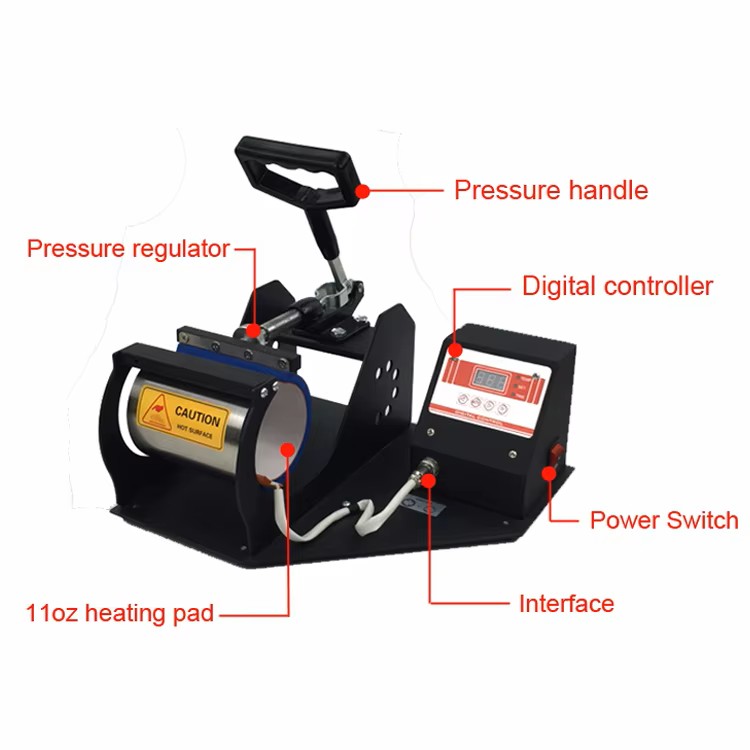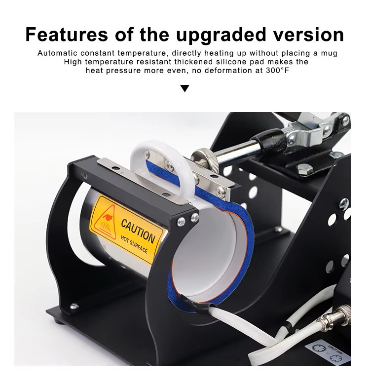 The 11oz Manual Sublimation Mug Press Machine is easy to operate, suitable for DIY sublimation coating mugs, and features a temperature range of 0-220°C with CE certification ensuring compliance with EU safety standards, providing market access. It has a power of 300W, supports manual operation, and comes with a 1-year warranty.
