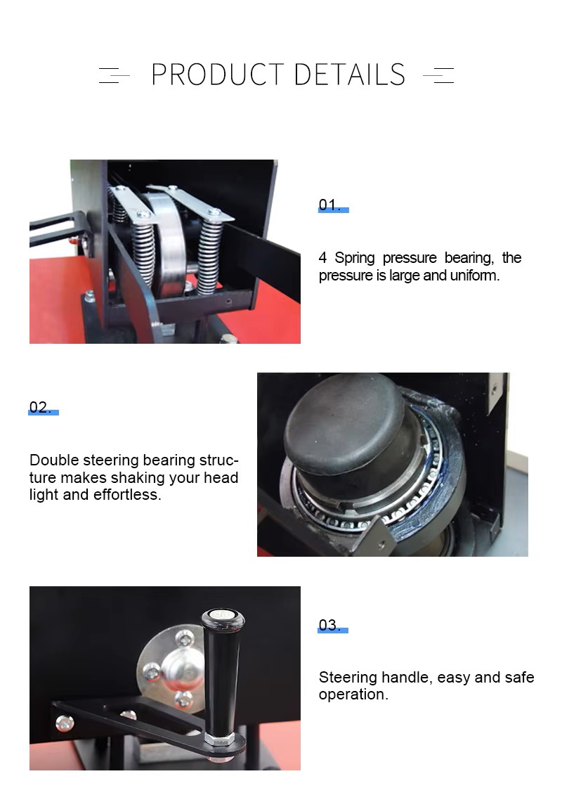 The Manual Swing T-Shirt Printing Machine features a 38x38cm/40×60cm shaking head heat press, offering high pressure and reliability for garment printing. Equipped with electric drive, it ensures efficient performance with minimal failure rates. The machine operates at 1000W/1800W 1200W/2400W power, supports 110V/220V voltage, and provides precise control with a temperature range of 0-220℃ and time range of 0-999 seconds. it complies with EU safety standards, ensuring market access and buyer confidence.