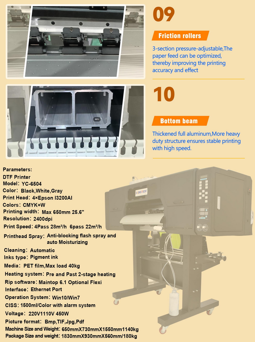 DTF With 4x Epson I3200 Heads,Optional Epson I1600 heads,2400dpi,Faster speed