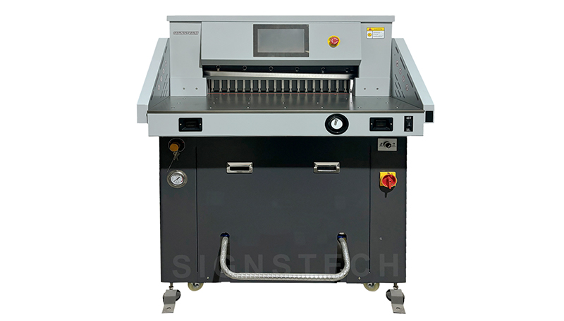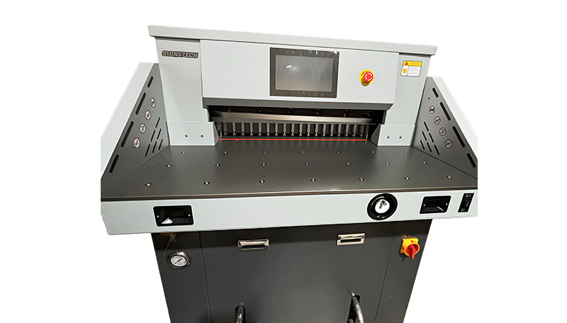 Double Hydraulic with strong power system design, imported servo motor with strong power, imported hydraulic components for ensuring quality, with external knob for adjustment pressure of paper clamp |