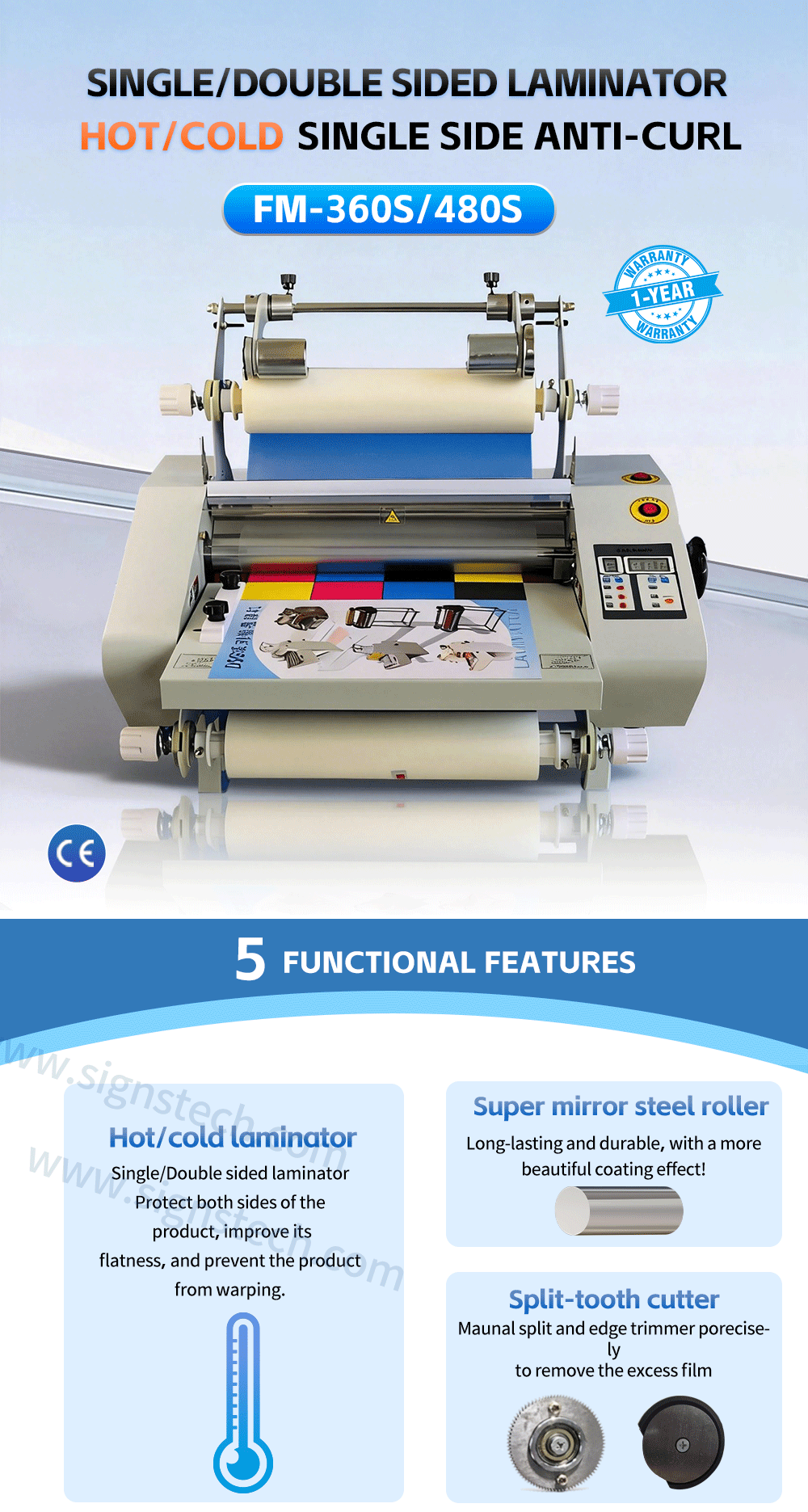 36cm/48cm Auto Hot/Cold Laminaor Anti-Curl