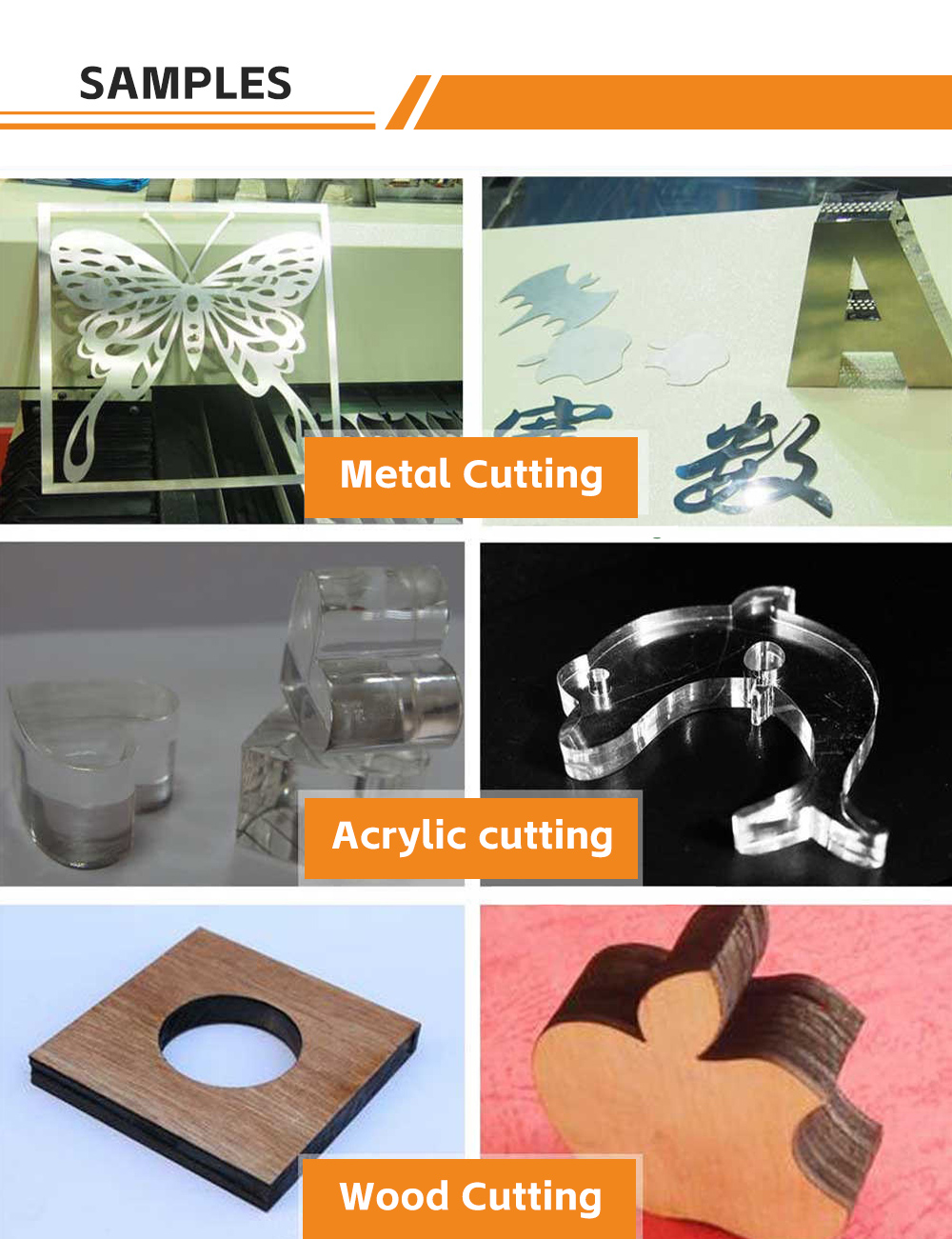 Stainless steel/ carbon steel, acrylic, leather, fabric, MDF and wood, carbon paper or related material laser processing. |