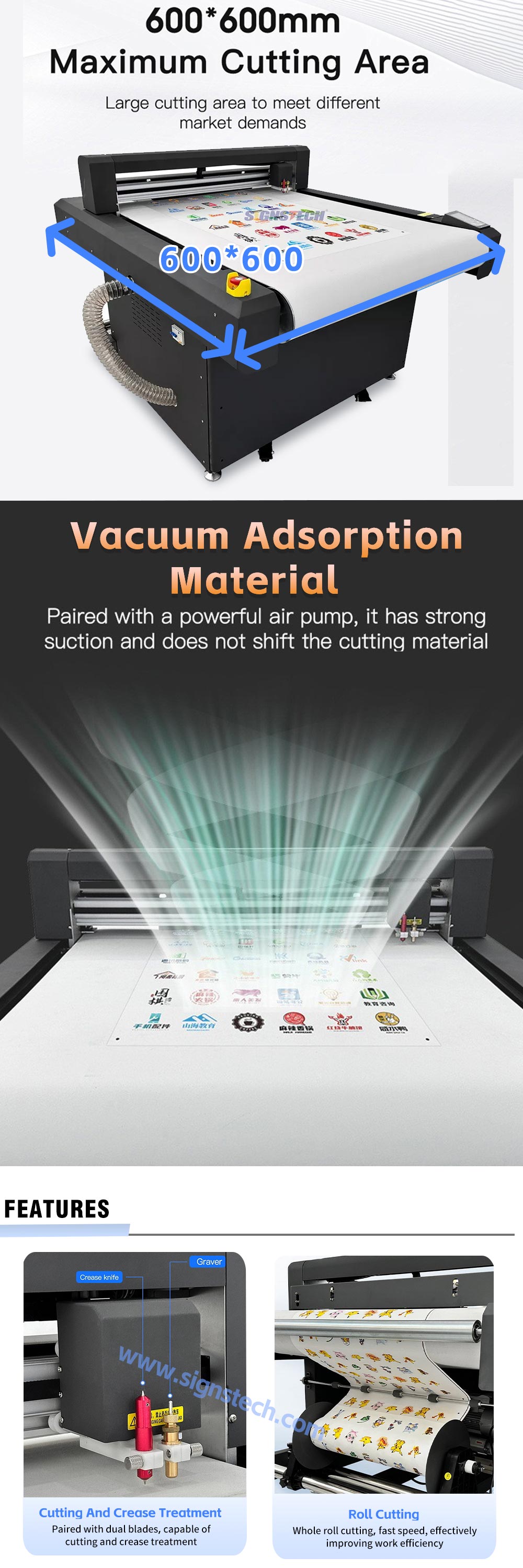 PET, PVC, cardboard, vinyl, film, fiber composite materials, Paper, PU, rubber etc. |